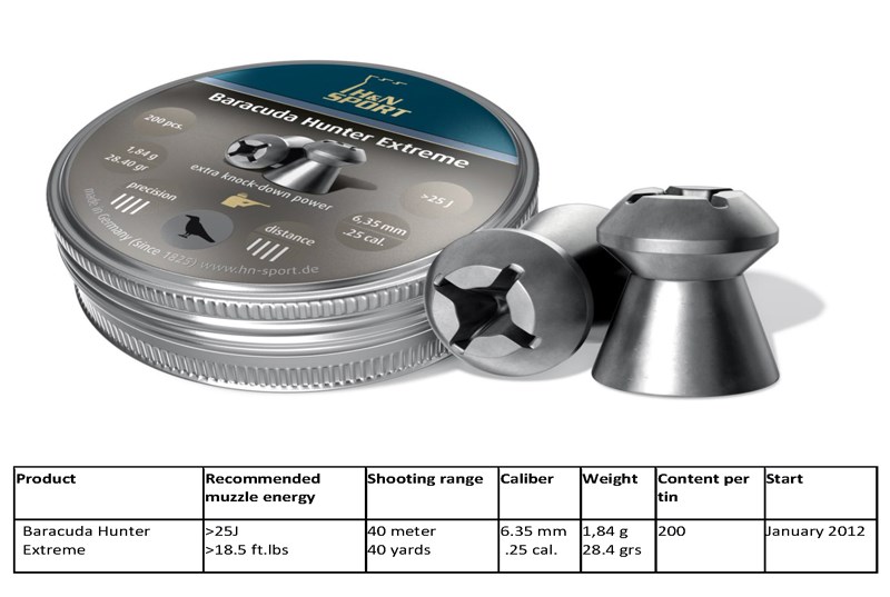 Ballistikinformation: http://www.hn-sport.de/en/products/air-gun-pellets/energy-values-ballistic-coefficient.html