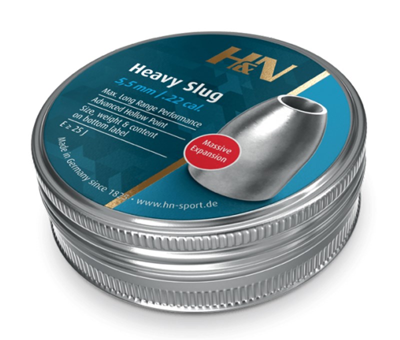 H&N Heavy Slug är en luftgevärskula för kraftiga luftgevär optimerad mot jakt och målskytte på upp till 200 m. Kulan har en hålspetsdesign och mjukt bly vilket gör att den får maximal expansion och energiöverföring vid träff.