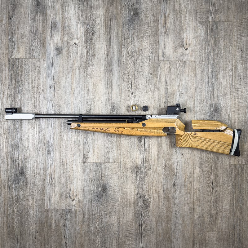 Detta luftgevär drivs av CO2 som måste fyllas på i tuben.