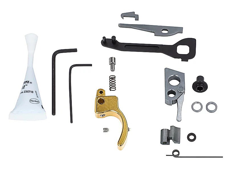 Komplett tryckeskit från Volquartsen. Passar till Ruger MK IV. Guld. Med detta trycke monterat så får du ett bra och lätt trycke och en driftsäker pistol. Avtrycksvikt ca 1,2 kg