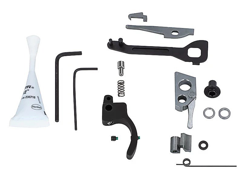 Disconnector, Target Hammer, Hammer Bushing, Target Sear, Target Trigger with plunger and springs samt Exact Edge Extractor och Sure Strike Firing Pin. Insexnyckel medföljer.