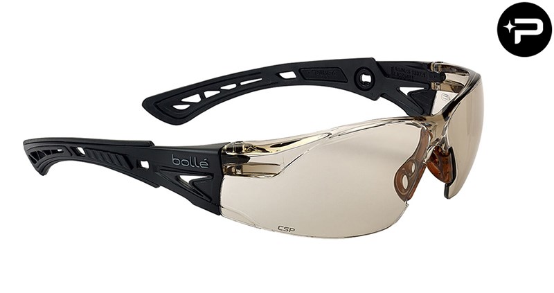 Skyddsglasögon från Bollé med kopparfärgad lins och låg vikt. Idealiskt för växlande ljusförhållande. Näsbryggan och skalmarnas design ser till att glasögonen sitter på plats. Levereras med mikrofiberpåse.