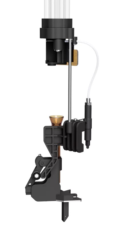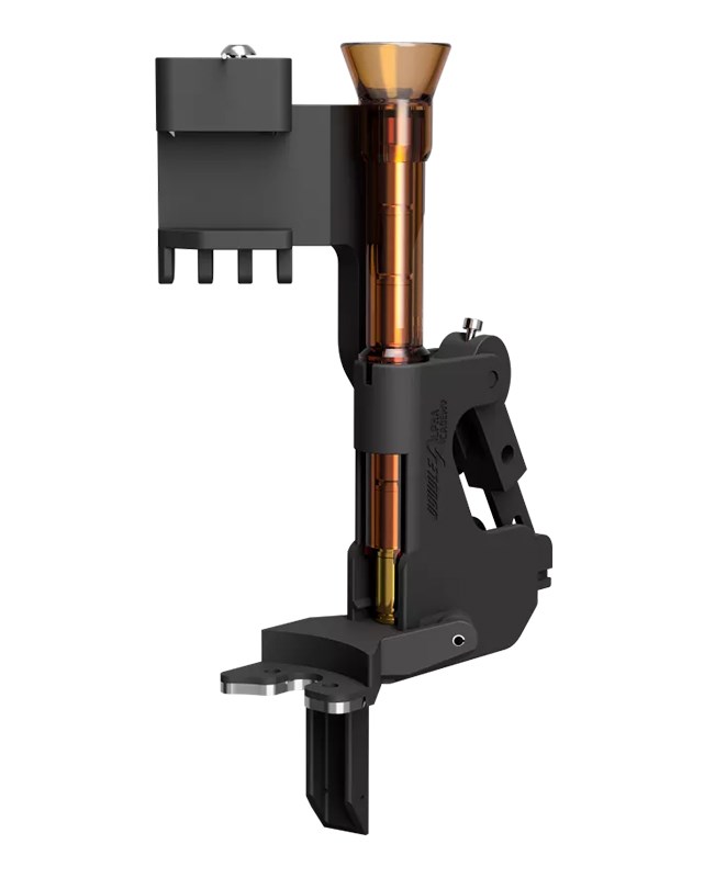 Om man vill uppgradera sin Dillon 550 med hylsmatning finns det nu ett smidigt alternativ. DAA har tagit fram en produkt där man kan montera på en extern hylsmatare med rörmagasin där en ny tomhylsa matas in på position 1 varje gång man har gjort ett komplett drag i laddpressens spak.