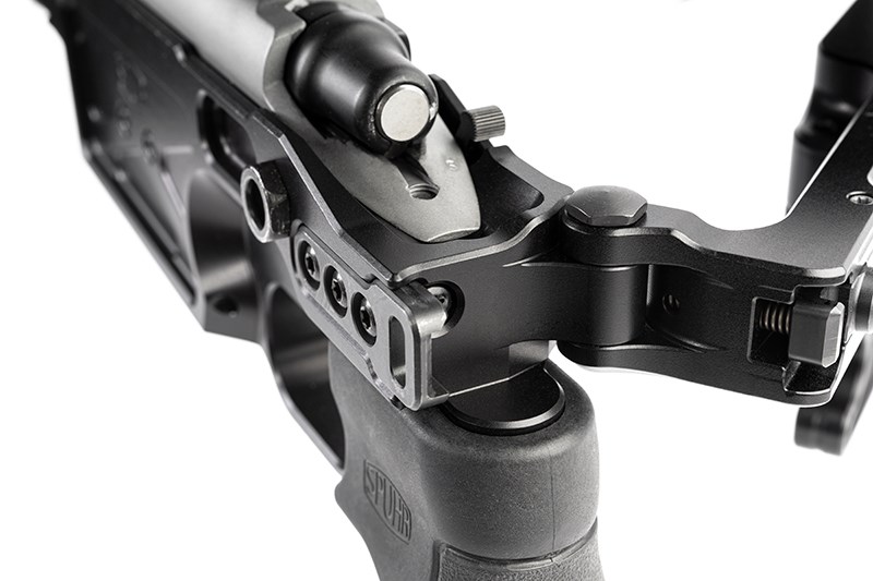 Framstocken är 16" och har Spuhr® Interface längs med alla fyra sidor för den som vill montera interna/externa vikter eller andra tillbehör.