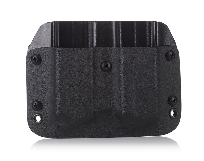 Öppen magasinhållare från Falco för två stycken CZ Shadow 2 17-skotts standardmagasin. Hållaren har två rejäla bältesöglor för 1,5" / 40mm bälte och sitter tight mot höften. Magasinhållaren är formgjuten för CZ Shadow 2 magasin och är tänkt att bäras på vänstersidan av kroppen. Då CZs magasin är liknande många andra tillverkares så kan även de passa men det får man isåfall undersöka.