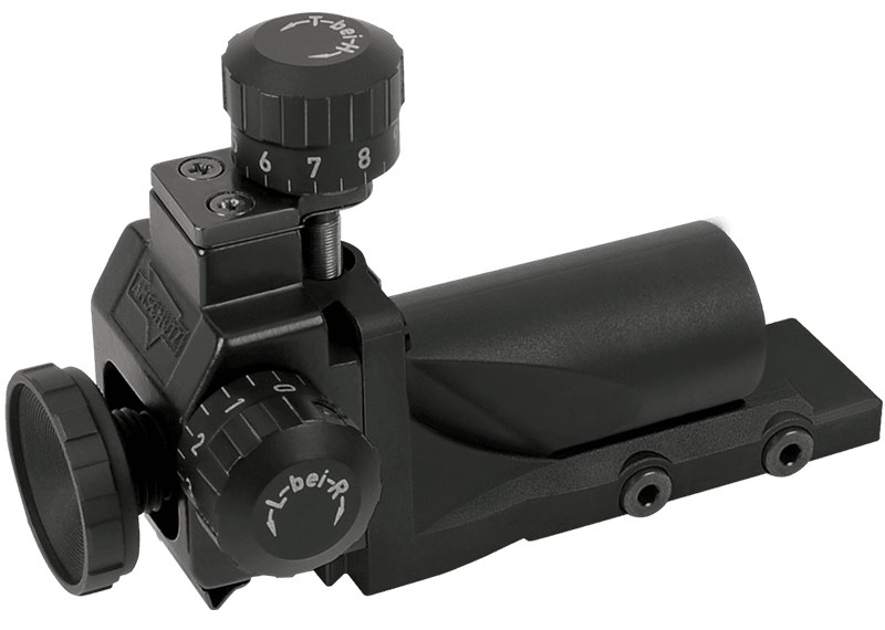 Denna diopter har 10 klick per rotation, 0.4 mm på 10 meter respektive 2 mm på 50 meter per klick. Kan roteras i längsgående axeln för att kompensera för lutning av geväret.