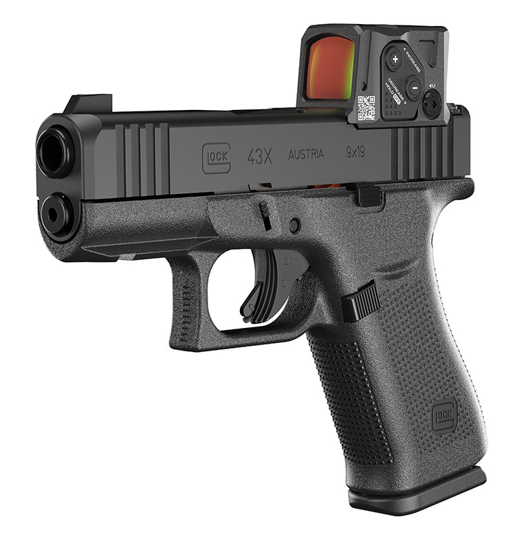 Glock 43X är kärleksbarnet mellan G48 och G43. Den har ergonomin och storleken hos G48:ans grepp men är fortfarande kompakt och smidig tack vare G43:ans mantel och pipa. Denna modell av G43X är ett samarbete mellan Aimpoint och Glock. Den levereras med ett Aimpoint COA och är fräst för Aimpoints nya innovativa A-CUT montage.