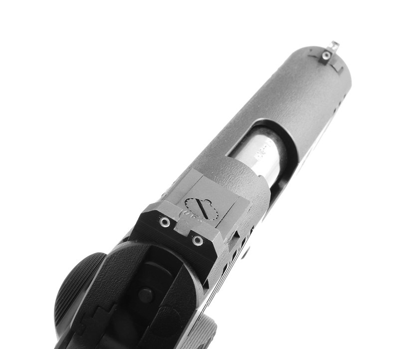 Sikte: Svart, ställbart sikte med tritiumprickar.
