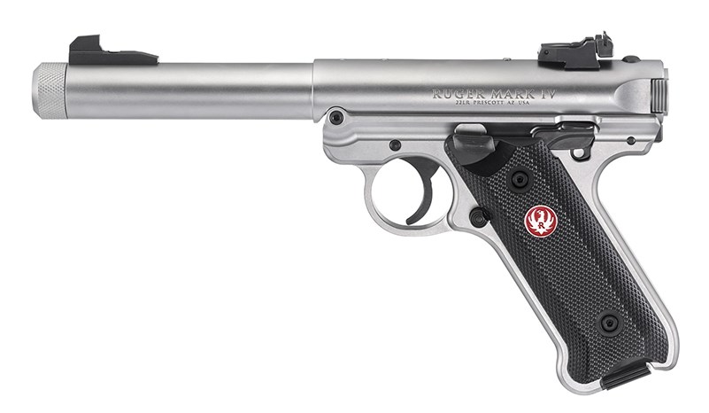 Klassikern från Amerikanska tillverkaren Ruger. En pistol som i sitt grundutförande varit med länge och som i många år visat sig vara pålitlig, driftsäker och mycket hållbar. Nytt för MK IV:an är bland annat att den är lättare att dela och hålla ren. Perfekt som klubbvapen eller som nybörjarvapen. Finns tävlingsskyttar som tävlar på absolut elitnivå och som skjuter med en Ruger MK III eller MK IV (möjligen med polerade eller väl inslitna tryckdelar). Denna version i rostfritt stål och med stålstomme - den är alltså lite tyngre och stabilare. Dennar version med gängad pipa för kompensator eller liknande.