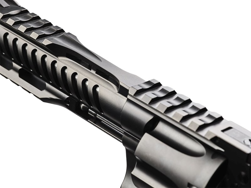 Övrigt: Unikt för Korth är att man har ett "Quick action change" av trumman. Du kan alltså, utan att skruva på någon skruv, på ett säkert sätt ta ut trumman och snabbt göra rent den eller. Revolvern är utrustad med det Korth kallar multiple distance sight rail med Picantinny profil, vilket i praktiken innebär att du kan montera sikten, sikteskenor eller tumstöd på många olika sätt och där det passar dig bäst. Stomme motsvarande L-stomme så att snabbladdare, hölster och annat som passar en S&W L-stomme även passar till Korth. Round Butt.